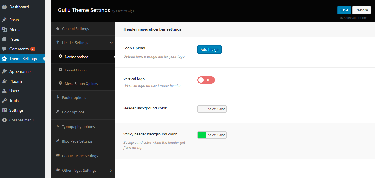 Header Settings Estimated reading: 1 minute 708 views In the Header settings section, you will get a lot of header customization options. In this section, you can change the logo and set the menu button, navigation bar settings etc.