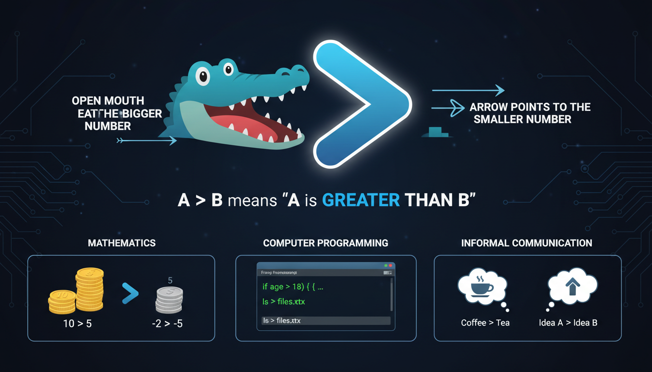In essence, it denotes that one quantity surpasses another. In casual writing, it can convey preference; in logic or code, it enforces a strict numerical comparison.