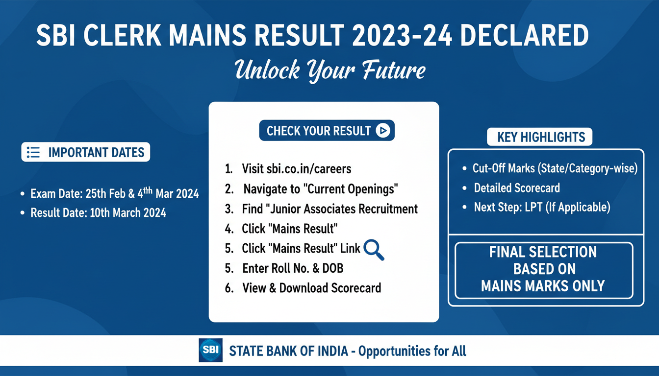 The SBI Clerk Mains Result 2025 is now officially declared. You can check your result PDF on SBI’s official careers page, download the individual scorecard to view section-wise and overall marks, and review state‑ and category‑wise cut‑offs to know if you’ve qualified. After that, the next step is the mandatory Local Language Proficiency Test (LLPT) before final selection.