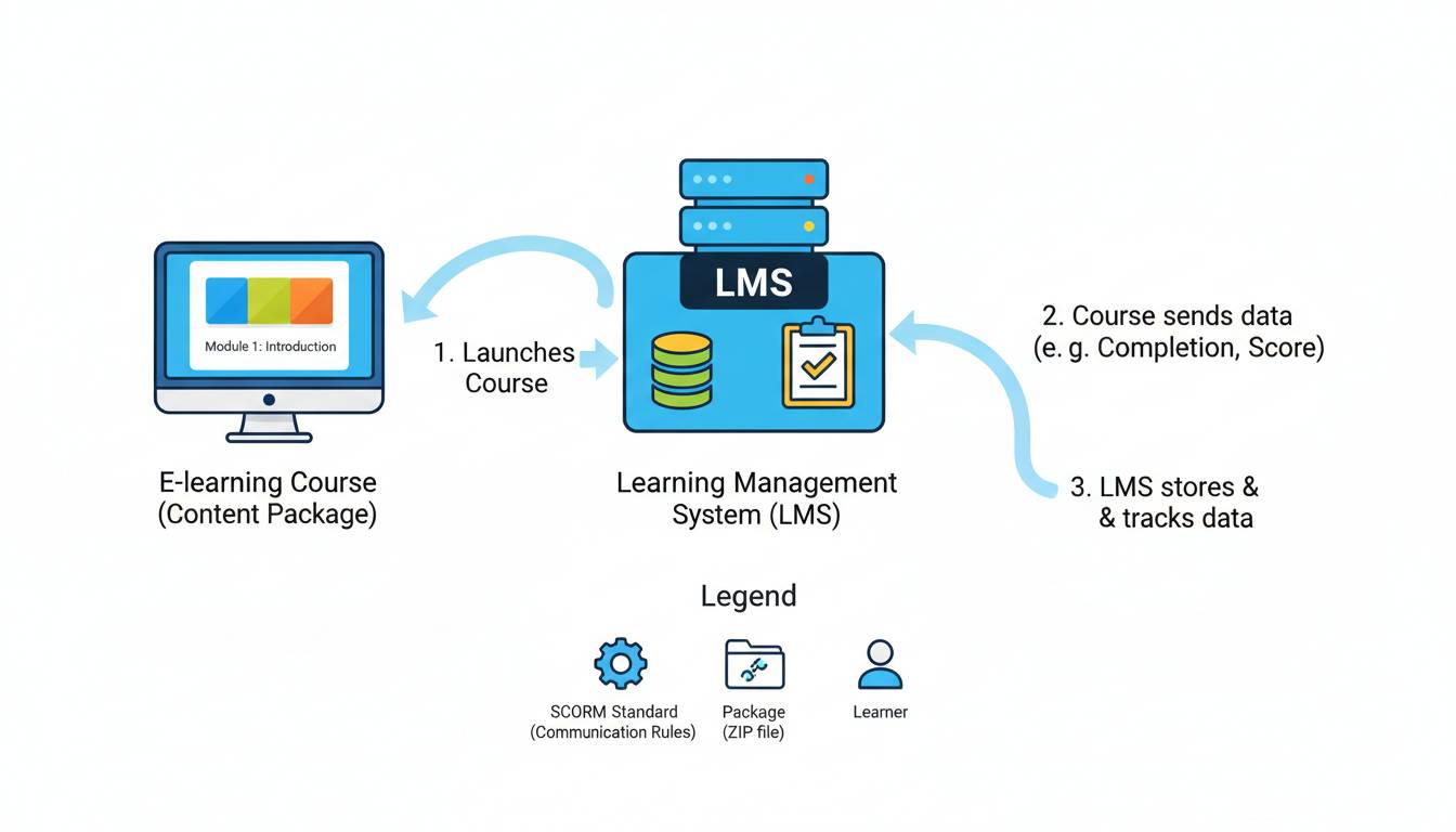 Understanding the technical side of SCORM helps you make better decisions as a course creator, even if you never write code. At its simplest, SCORM defines how two software systems—the course content and the LMS—exchange information.