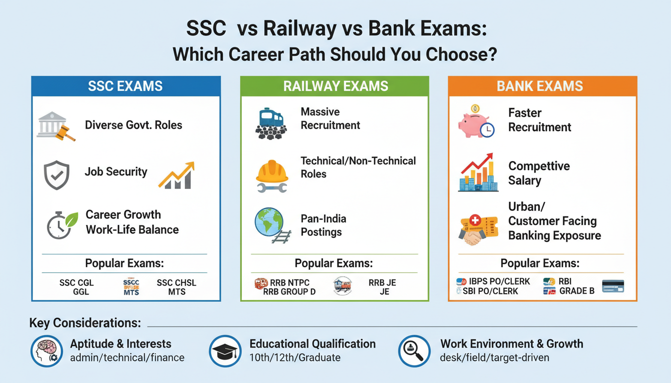 SSC vs Railway vs Bank Exams: Which Career Path Should You Choose?