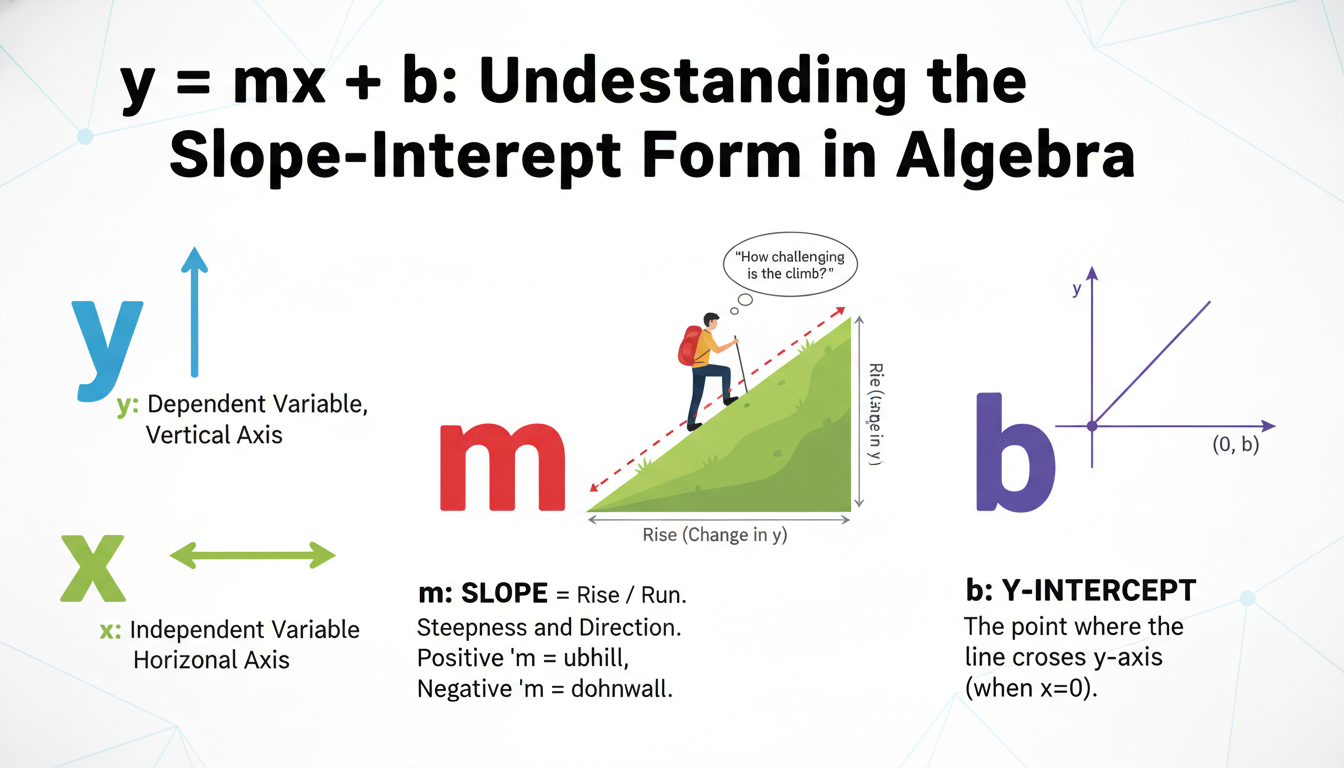 Let’s dive in—kind of like bumping into that one friend who keeps repeating how simple algebra is (but then stumbles over fractions). y = mx + b is often tossed around as the slope-intercept form of a line, and sure, technically that’s correct. But it’s less about memorizing and more about getting cozy with how change works—how one thing (x) moves another (y), with slope and offset in the mix. Picture it like a ramp you’re walking up and down, or a car rolling from any given starting point. In real life, you don’t talk in neat symbols, but once you catch the intuition, that form becomes your mental Swiss Army knife.